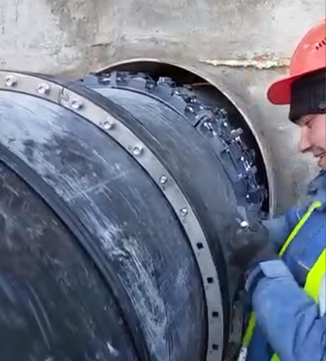 Водозабор из реки Луги. Насосная станция 1-го подъема 2023 Процесс монтажа опорно-направляющих колец-спейсеров Гидрокорд™ ОНК для оцентровки и опоры рабочих труб ф1000мм и гильзе 1120х10мм